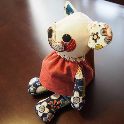 生成コットン地のお顔と、ブルー系北欧フラワー柄のボディです。